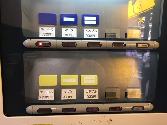 小ラーメン 730円 小ブタ 830円 小ダブル 930円 大ラーメン 830円 大ブタ 930円 大ダブル 1030円